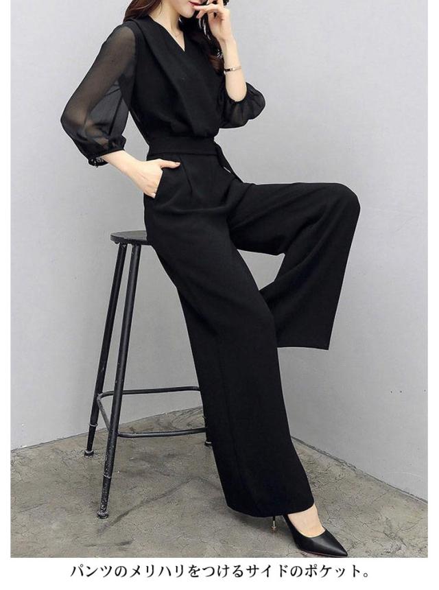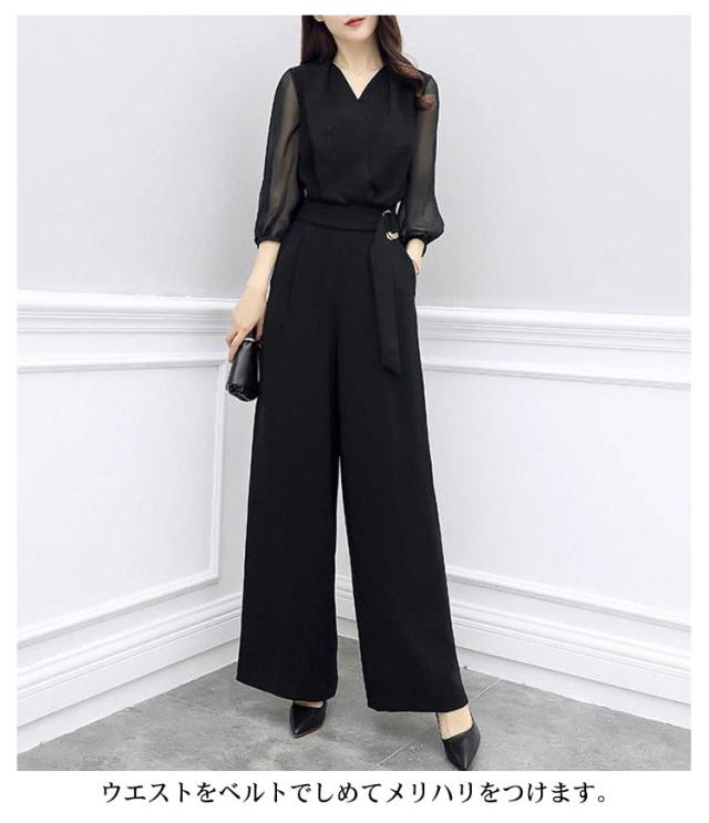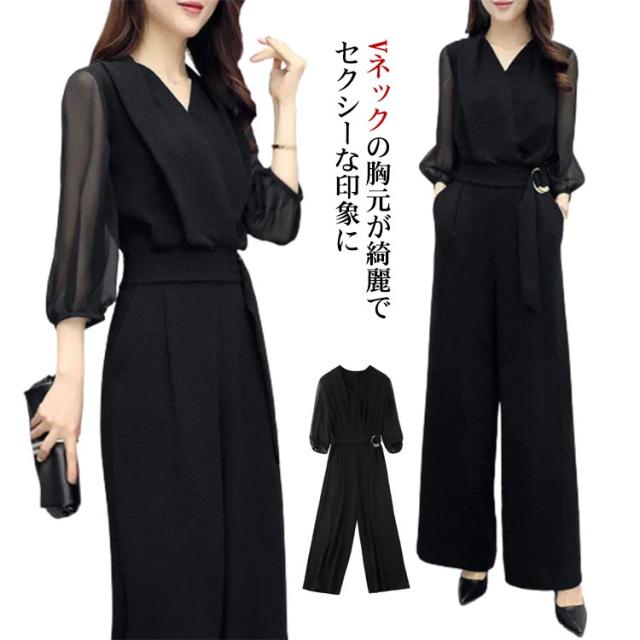 送料無料 パンツドレス パンツスーツ 結婚式 ドレス Vネック セットアップ レディース オールインワン パンツ パンツスーツ フォーマル リングベルト付 フォーマル お呼ばれドレス ゲストドレス ワイドパンツ 入園式 卒園式 入学式 卒業式 2次会 パーティー 披露宴 二次会