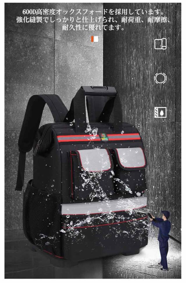 | リュック型大容量ツールバッグ。【15ポケット】 リュックデザインなので、普通の手提げのツールバックに比べてより楽に持ち運びできる。 豊富なポケットとホルダーでたっぷり収納、すっきり整理できる。小型工具から電動工具まで収納可能です。 600D高密度オックスフォードを採用しています。強化縫製でしっかりと仕上げられ、耐荷重、耐摩擦、耐久性に優れてます。 バックパネルやショルダーストラップは幅を広め、柔らかなパッドが付いて、優れた減圧効果があり、長時間に重い工具を負担しても疲れにくいです。また、通気性が高い、汗などを速やかに吸収できます。暑い日でも快適に背負います。 工具入れバッグは様々な道具や工具の収納、携帯に、仕切りがついており大変便利です。ガーデニング、釣り、工芸、建築、大工、請負業者、屋根、ラインマン、石工、鉄工などの作業を携わる人に最適にします。日常生活のDIY活動だけでなく、自動車修理、木工および専門な修理活動も最適です。 | |
