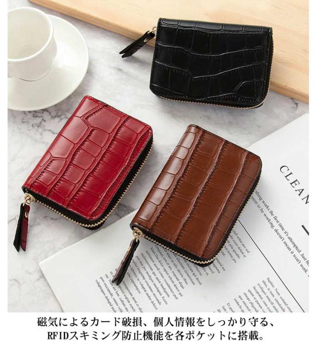 送料無料 カードケース クロコダイル カード入れ 小銭入れ ミニ財布 コンパクト 大容量 レディース メンズ ミニウォレット スキミング防止 じゃばら 磁気防止 キャッシュレス クレジットカード ICカード カードホルダー ラウンドファスナー