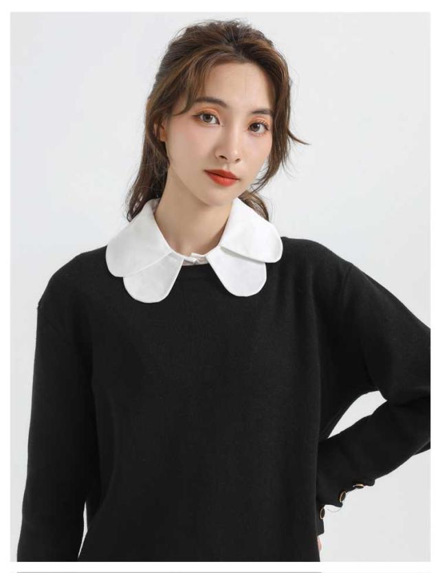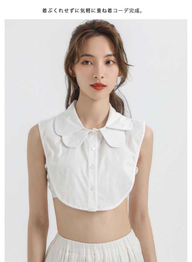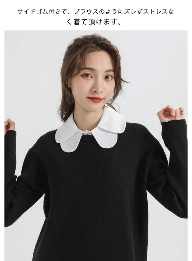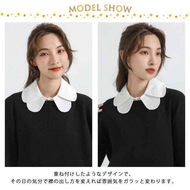 | 優しい印象を与えてくれる重ね丸襟タイプの付け襟。 重ね付けしたようなデザインで、その日の気分で襟の出し方を変えれば雰囲気をガラッと変わります。 着ぶくれせずに気軽に重ね着コーデ完成。 サイドゴム付きで、ブラウスのようにズレずストレスなく着て頂けます。 カジュアルから大人キレイめコーデまで幅広く活躍してくれます。 | |