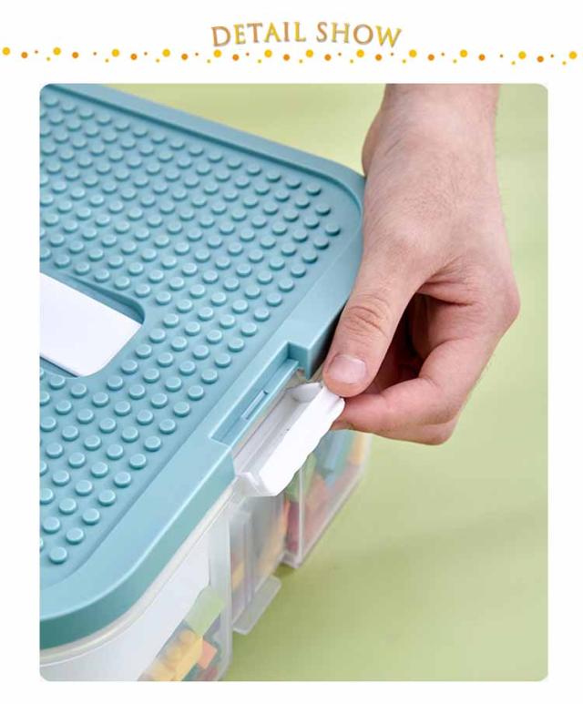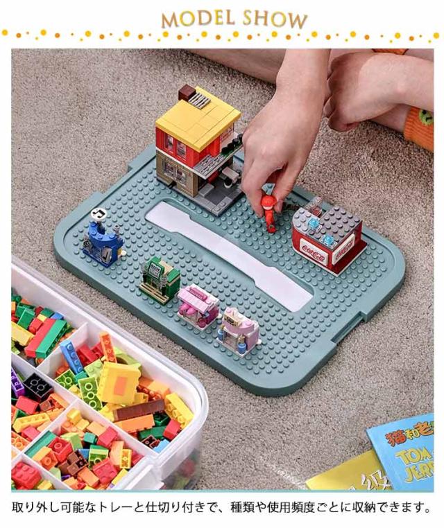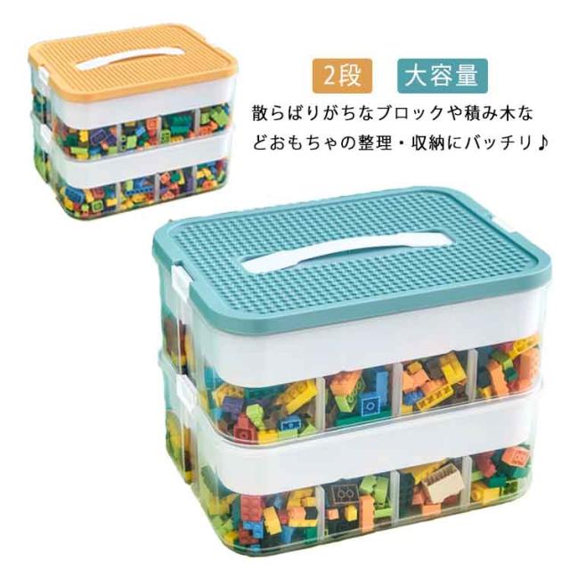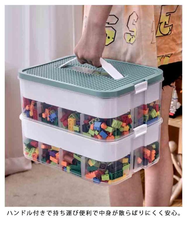 | 散らばりがちなブロックや積み木などおもちゃの整理・収納にバッチリ♪ 取り外し可能なトレーと仕切り付きで、種類や使用頻度ごとに収納できます。 大容量の2段設計、たっぷり収納でき、省スペース。 ハンドル付きで持ち運び便利で中身が散らばりにくく安心。 お子様のブロックはもちろん、ビーズやボタンなどの手芸用品、ミニチュアやプラモデルなどの細かいパーツなどの収納に! フタ部分は凸凹構造になって、展示台としても◎ お子様にお片づけを身につけさせ、ブロックをほこりや湿気などから守り、いつもきれいにお遊びいただけます。 ご注意:ブロックなどおもちゃは付属していません。 | |