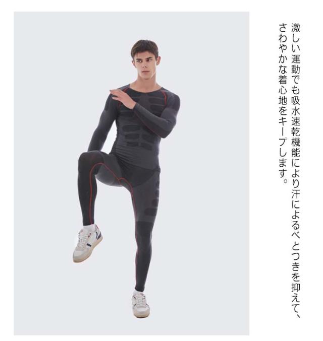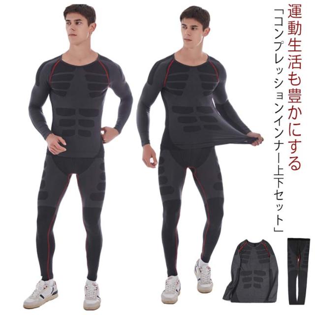 メンズ スポーツインナー アンダーシャツ 上下セット 着圧 吸汗速乾 加圧シャツ 加圧インナー ストレッチ 伸縮 スポーツ用インナー 肌着 コンプレッションウェア ロングシャツ ロングタイツ 男性 ゴルフ スポーツ