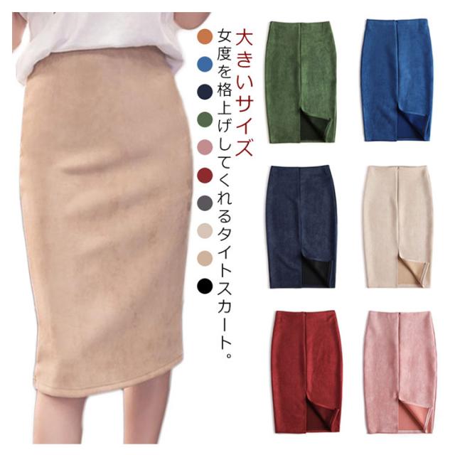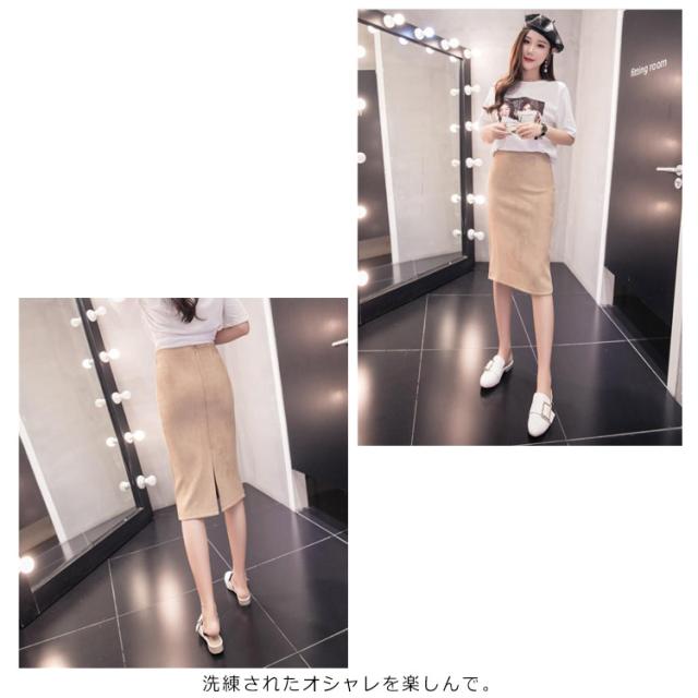 スカート レディース ペンシルスカート 春 タイトスカート タイト フロントスリット スェードスカート ひざ丈 ミモレ丈 iラインスカート ハイウエスト ひざ丈 ストレッチ ゴム ボトムス きれいめ オフィス 大人 カジュアル デート服 送料無料