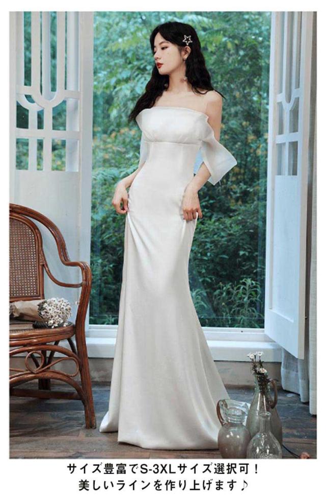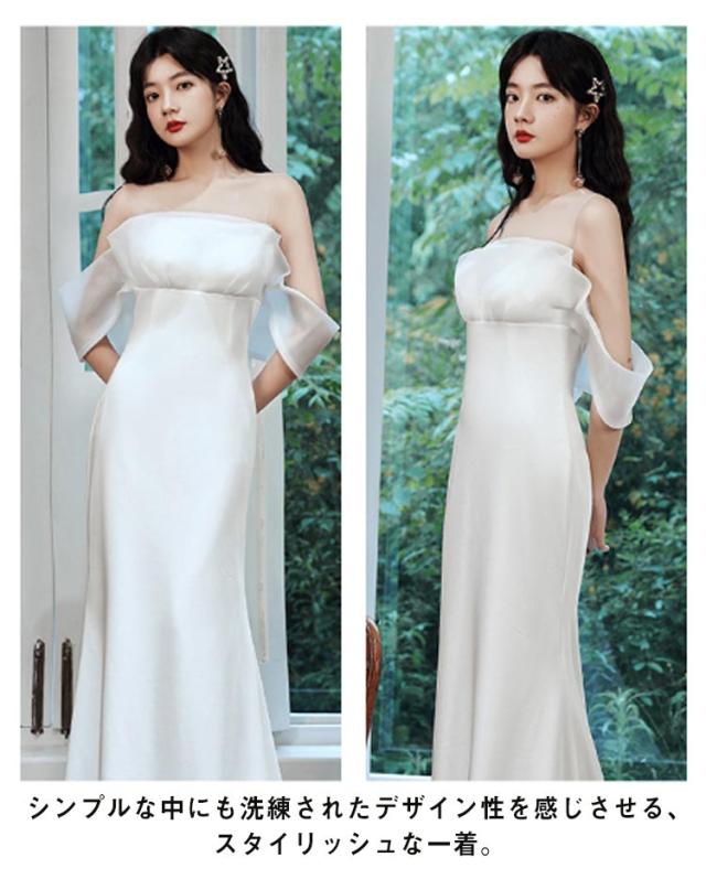 前撮り ドレス ワンピース ウェディングドレス チュール 肩出し オフショルダー 二次会 花嫁 エンパイア カジュアル ロングドレス エンパイアドレス レストランウエディング 後撮り パーティードレス 忘年会 結婚式 披露宴 演奏会