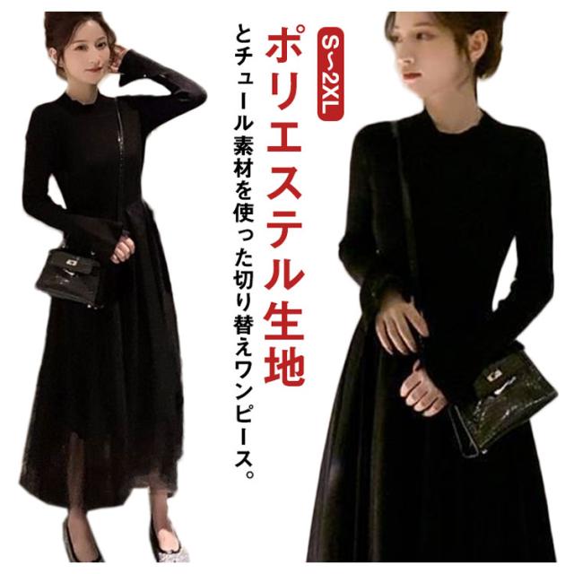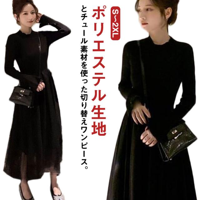 ワンピース レディース 長袖 チュール ロング丈 チュールスカート チュールワンピース 入学式 卒業式 ロング 切り替え フォーマル 無地 春 夏 秋 送料無料