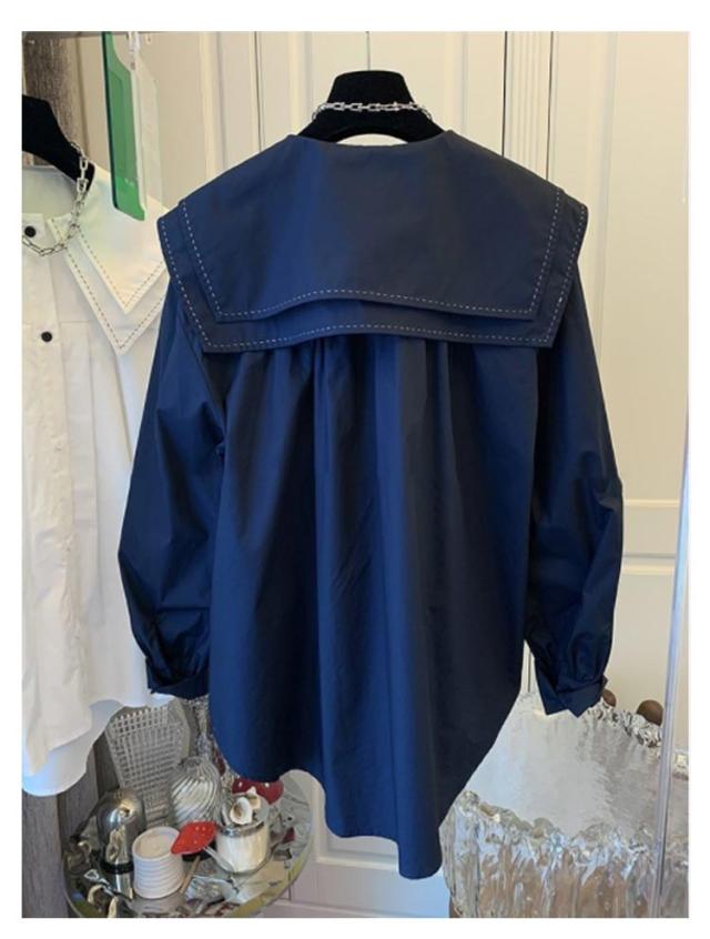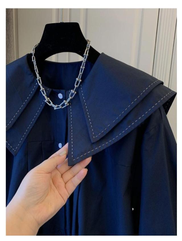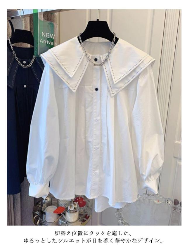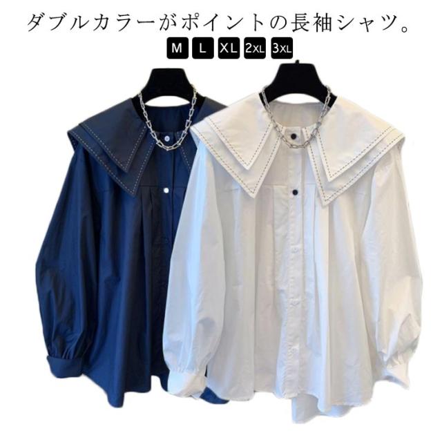 シャツ レディース 長袖シャツ ブラウス ダブルカラー セーラーカラー ビッグ襟 トップス シャツブラウス ゆったり タック ふんわり ボリューム袖 前開きシャツ ビッグカラー 大人 可愛い オフィス 春夏 秋冬 送料無料