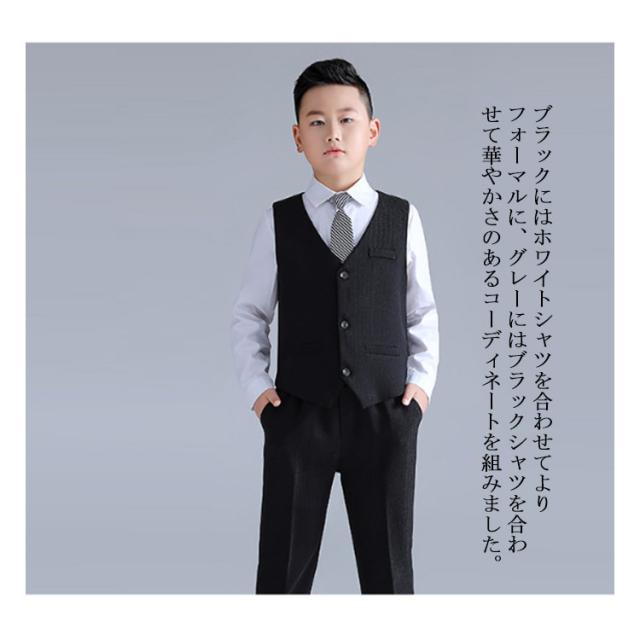 キッズ スーツ 男の子 卒業式 スーツ 5点セット フォーマルスーツ 黒 大きいサイズ フォーマル 子供 スーツ スーツセット ベスト 長袖シャツ ネクタイ付き ピアノ発表会 発表会 結婚式 成人式 七五三 入学式 130 140 150 160 170 180