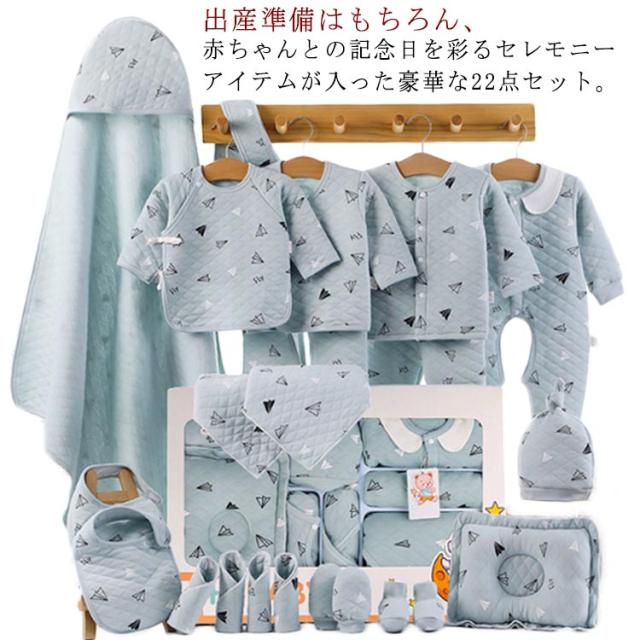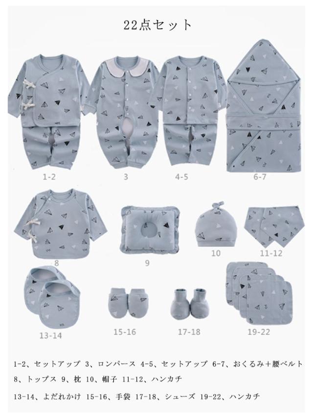 出産準備 22点セット 肌着 ロンパース ベビー服 上下セット おくるみ 枕 帽子 手袋 よだれかけ ハンカチ シューズ 綿 男の子 女の子 新生児用品 ベビーウェア かわいい おしゃれ 春夏秋冬 退院着 お宮参り 出産祝い ギフト プレゼント 双子 初産 セット 総柄 送料無料