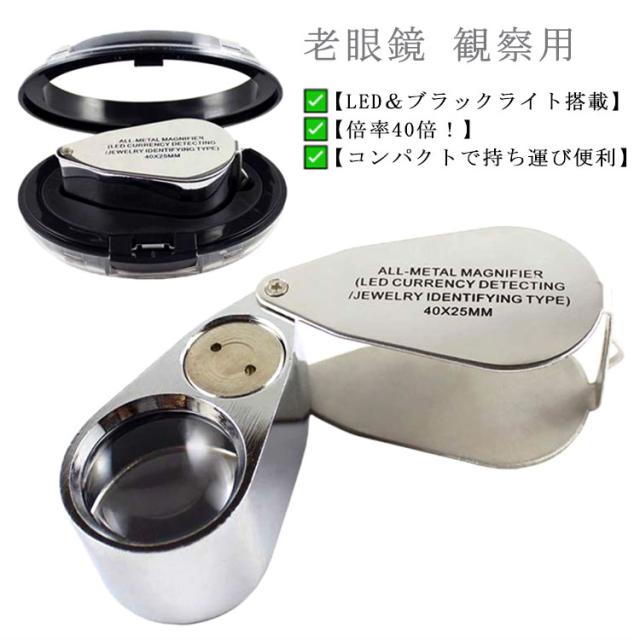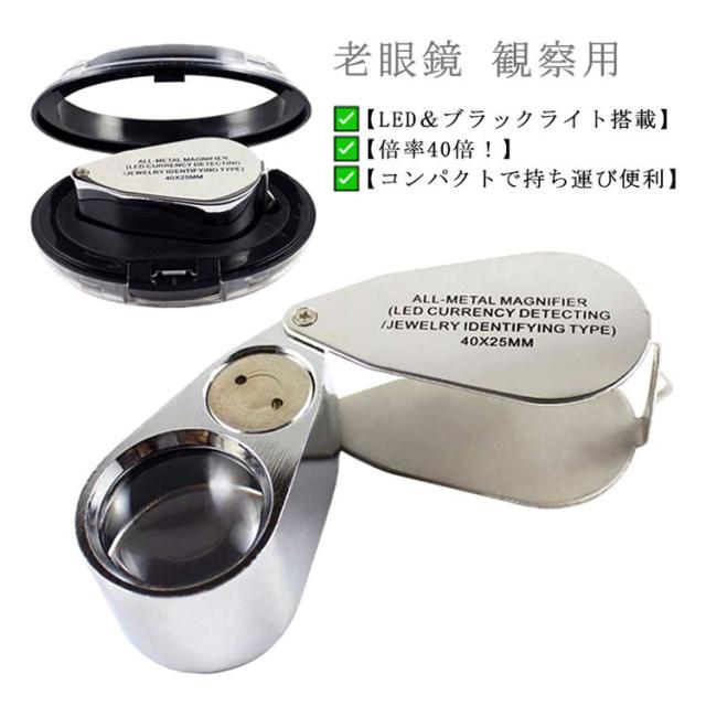 ルーペ ジュエリー 携帯 ジュエリールーペ 宝石鑑定 40倍 拡大鏡 LEDライト付き ケース入り 軽い コンパクト 精密作業に 校正 校閲 ミニルーペ アイルーペ 拡大鏡 虫眼鏡 天眼鏡 クリスマス ポケット ジュエリールーペ 送料無料