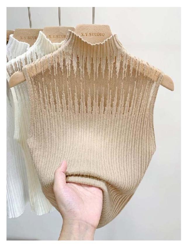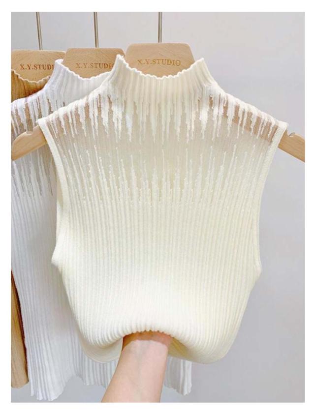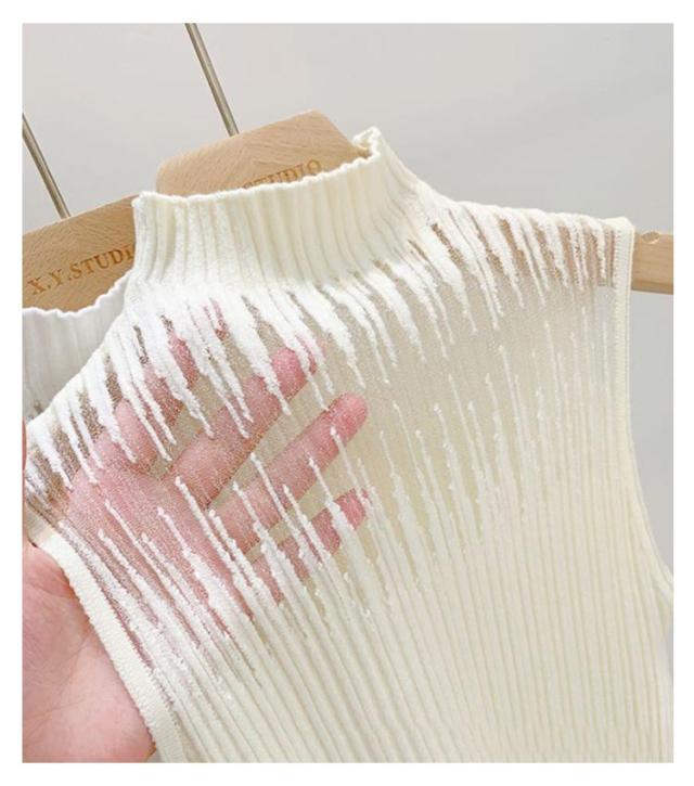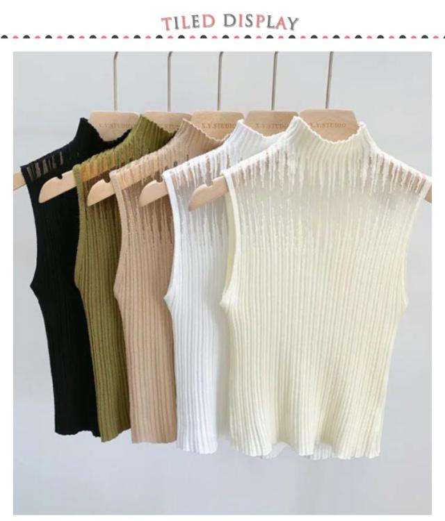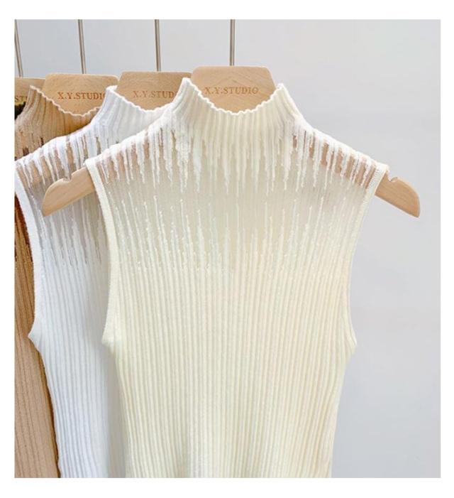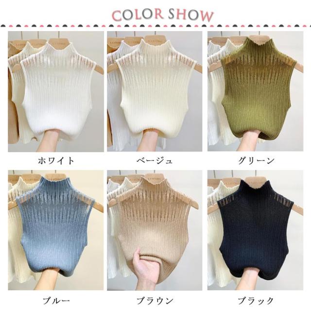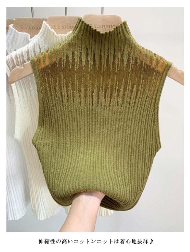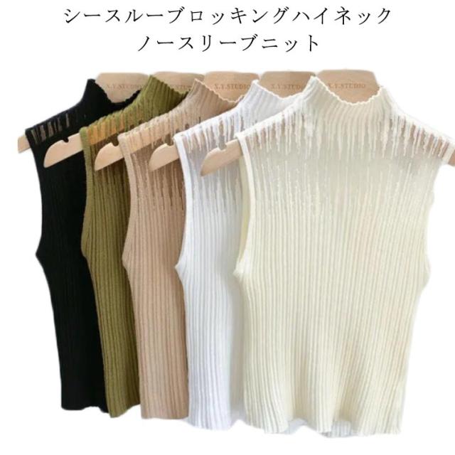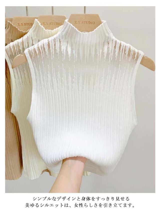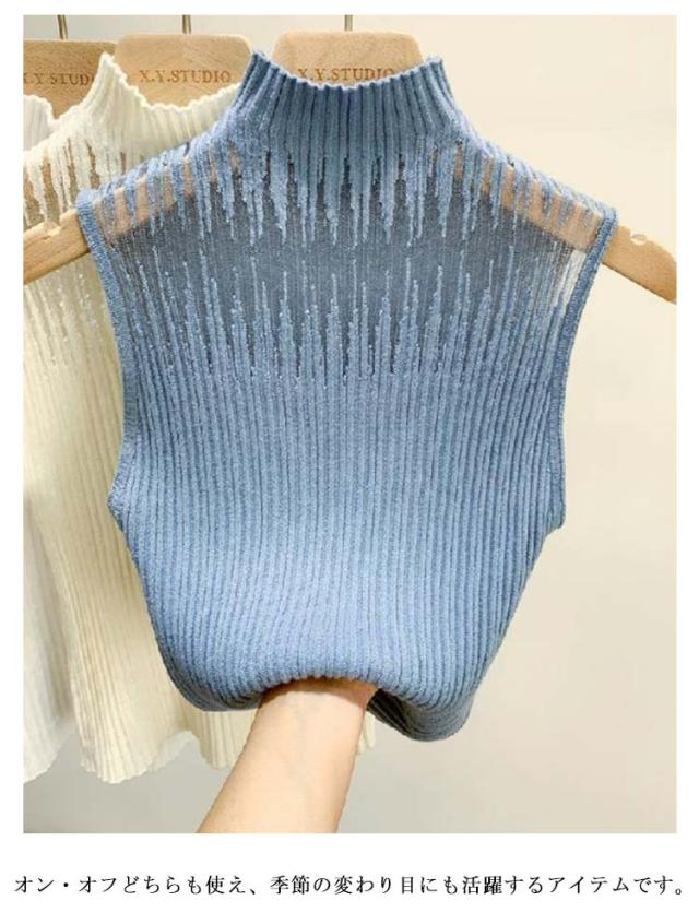 インナー レディース シースルー 春 ノースリーブ トップス タンクトップ カットソー 透かし チュール ハイネック サマーニット 秋 冬 リブニット 見せブラ 薄手 無地 大人可愛い 20代 30代 40代 OL