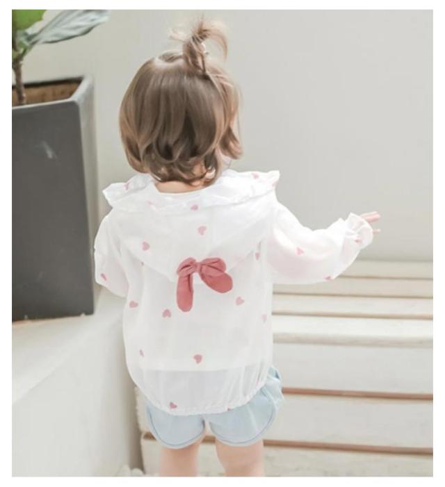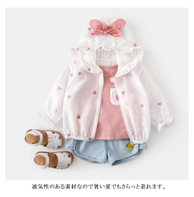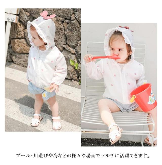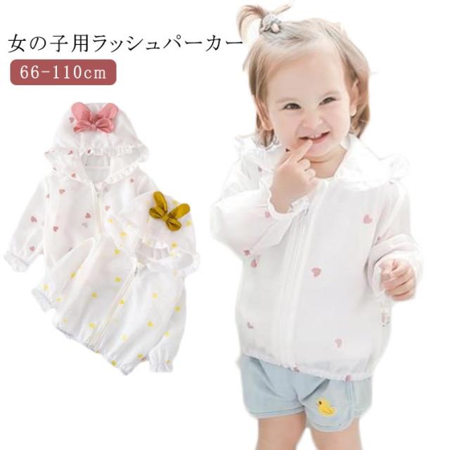 子供服 ラッシュガード 女の子 ベビー ラッシュパーカー ジップアップ 長袖 フード付き 羽織 前開き 軽量 UV対策 紫外線対策 日焼け止め 紫外線防止 冷房対策 トップス 女児 キッズ ハート柄 普段着 旅行 通園 夏 全2色