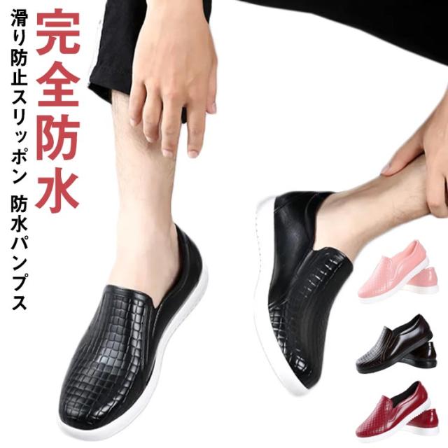 | 完全防水 滑り防止スリッポン 防水パンプス フラットなローヒールで歩きやすい♪ PVCによる一体成型なので水がしみません! 防水設計、突然の雨も安心 | |