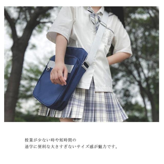 スクールバッグ ショルダーバッグ スクバ 縦型 かばん A4 ネイビー 紺 ブラック 黒 男子 女子 学生 バッグ 中学生 高校生 通学鞄 サブバッグ 入学 通学 登校 斜め掛け ナイロン 撥水 丈夫 軽量 大容量 反射テープ【送料無料】