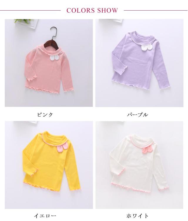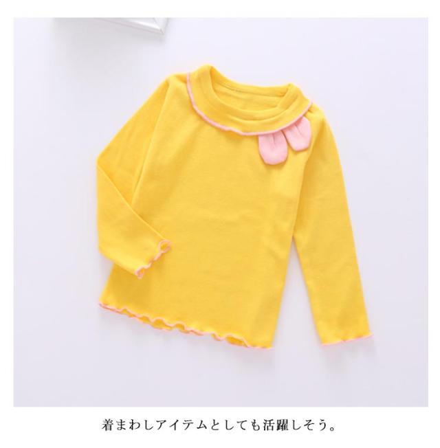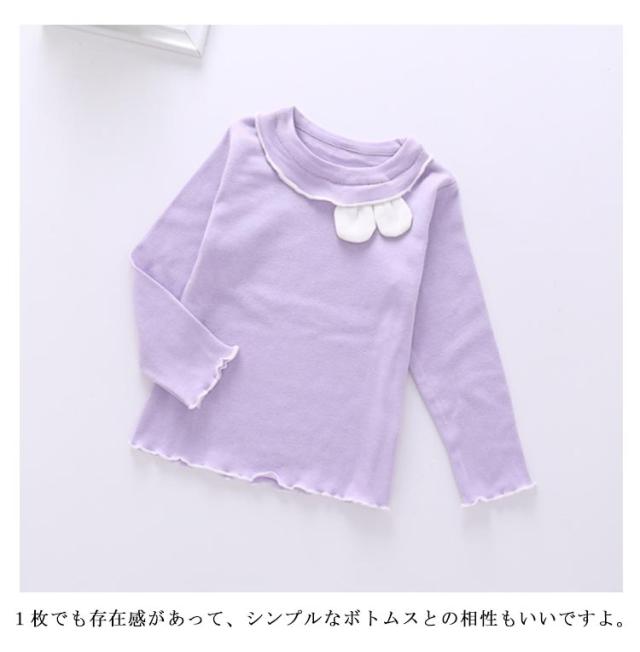キュートな兎耳のロンT キッズ tシャツ 長袖 インナー カットソー 子ども服 ロンT 肌着 インナーシャツ フリル メロウ キュート 女の子 子供服 小学生 春 秋冬 アンダーシャツ ストレッチ 伸縮性 薄手