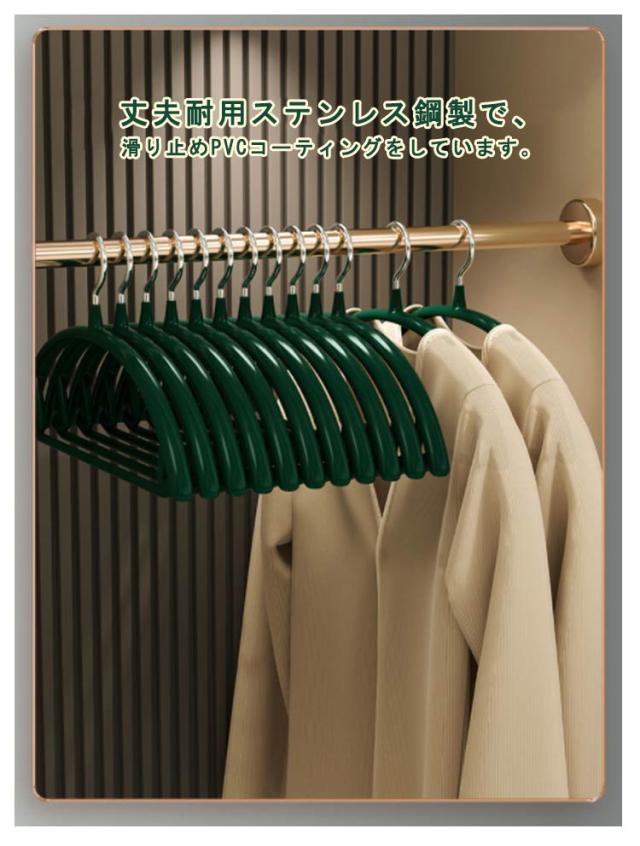 | PVC材料が滑り止めの効果がよくて、どんな衣類を掛けても落ちる心配がありません。 コート、洋服、キャミソール、スカート、タオル、またズボンにも対応できます。安心に使えるハンガーです。 丈夫耐用ステンレス鋼製で、滑り止めPVCコーティングをしています。 頑丈な材料、頑丈な加工で作られており、防錆効果もあります。 各ハンガーの耐荷重が約8KGで、冬はコートやセーター、ダウンジャケットを吊るすのに適しています。 | |