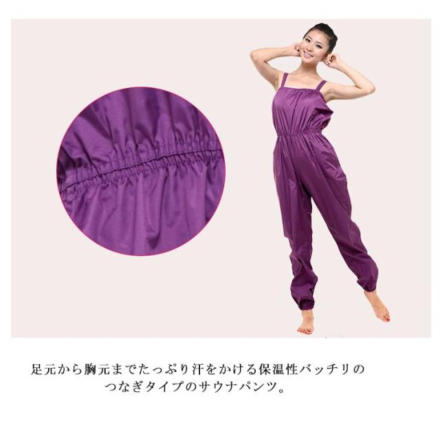 | ハイウエストパンツ/つなぎ(オールインワン)サウナパンツ。 薄めのやわらかい生地で動きやすく、たっぷり汗がかけます。 足元から胸元までたっぷり汗をかける保温性バッチリのつなぎタイプのサウナパンツ。 スポーティーでオシャレなウォームアップウエア♪ 胸元、ウエスト、裾にゴム付き | |