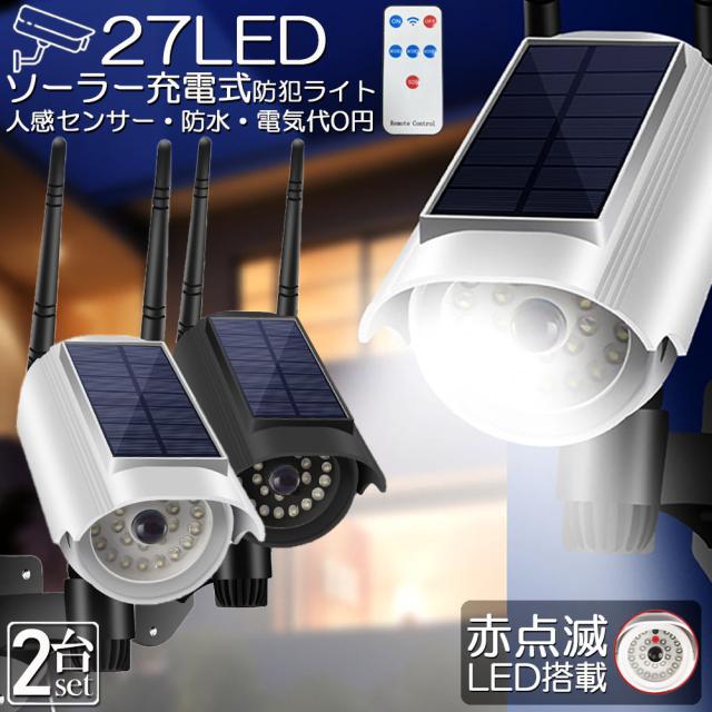 ソーラーライト 屋外 led 2個セット ダミーカメラ 防犯カメラ型 ダミーカメラ 27LED センサーライト 屋外照明 人感センサーライト 3つ点灯モード IP65防水 防塵 電源不要 防犯カメラ型 自動夜間点灯 人感検知 ダミーカメラ型ライト 壁掛け庭
