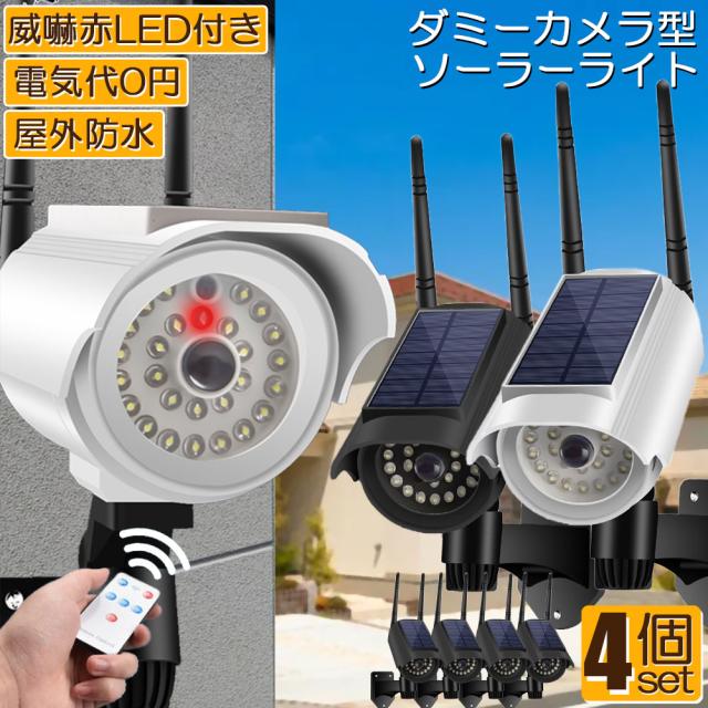 ソーラーライト 屋外 led 4個セット ダミーカメラ 防犯カメラ型 ダミーカメラ 27LED センサーライト 屋外照明 人感センサーライト 3つ点灯モード IP65防水 防塵 電源不要 防犯カメラ型 自動夜間点灯 人感検知 ダミーカメラ型ライト 壁掛け庭
