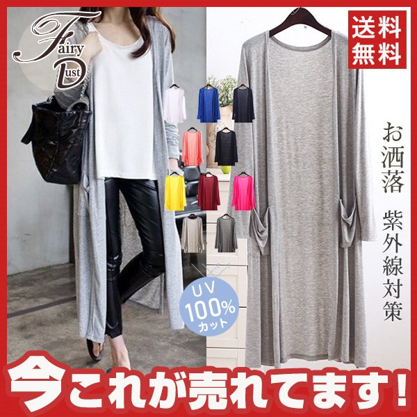 uvカットカーディガン レディース 春夏 薄手 ポケット ロング丈シャツ 細身 冷房 長袖ブラウス 紫外線カット 肌触り ビーチウェア 伸縮性 送料無料