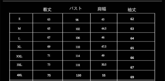 | サイズ | S M L XL 2XL 3XL 4XL |