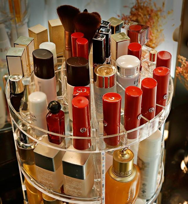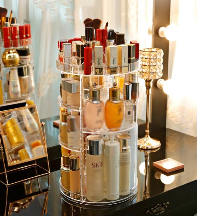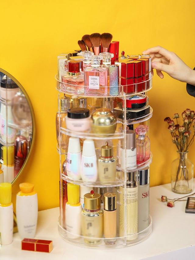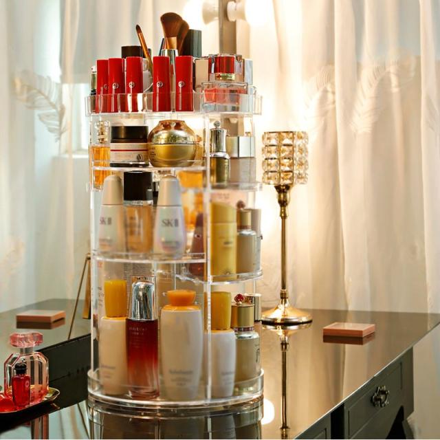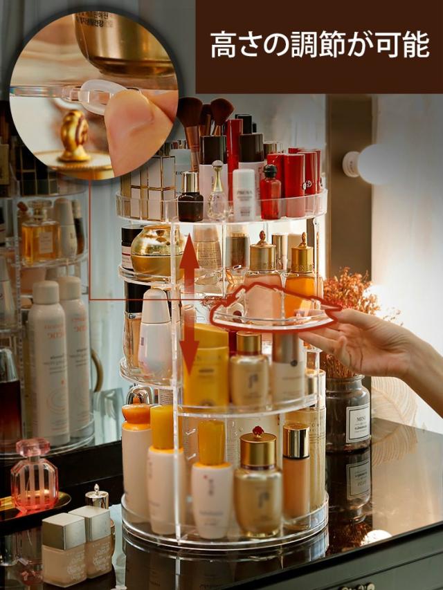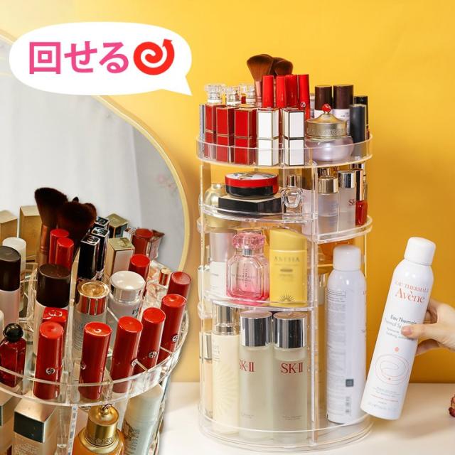 コスメ収納 化粧品収納 メイク収納 美容グッズ 化粧水 ヘアケア用品 ケア用品 整理 回転 綺麗 シンプル 棚 カラフル
