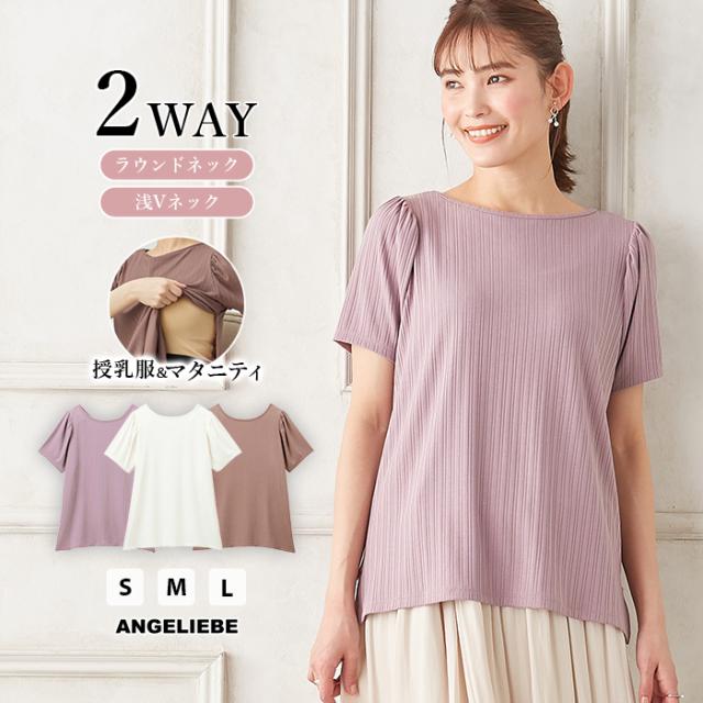 【出産後も長く使える】2WAY ランダムリブカットソー半袖トップス マタニティ・産後授乳服