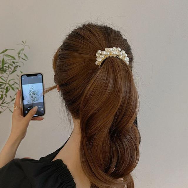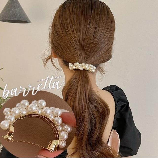 バレッタ ヘアアクセサリー レディース フェイクパール U型 ポニー 大ぶり 大きめ 大人可愛い 存在感 髪留め 髪飾り まとめ髪 ハーフアップ ヘア