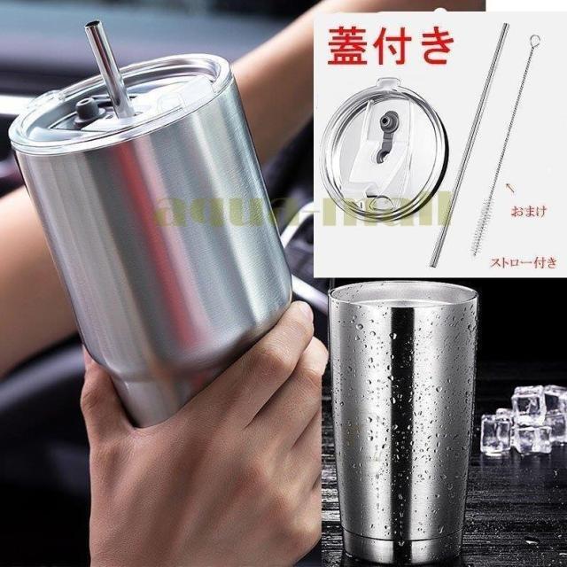 絶縁タンブラー ステンレス製カップ 二重壁 真空断熱 旅行用マグ ふた付き クリーニングブラシ 熱い/冷たいドリンク用 ストロー付き 父の日 男性用 記念品