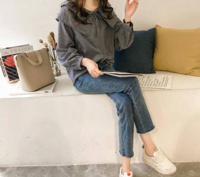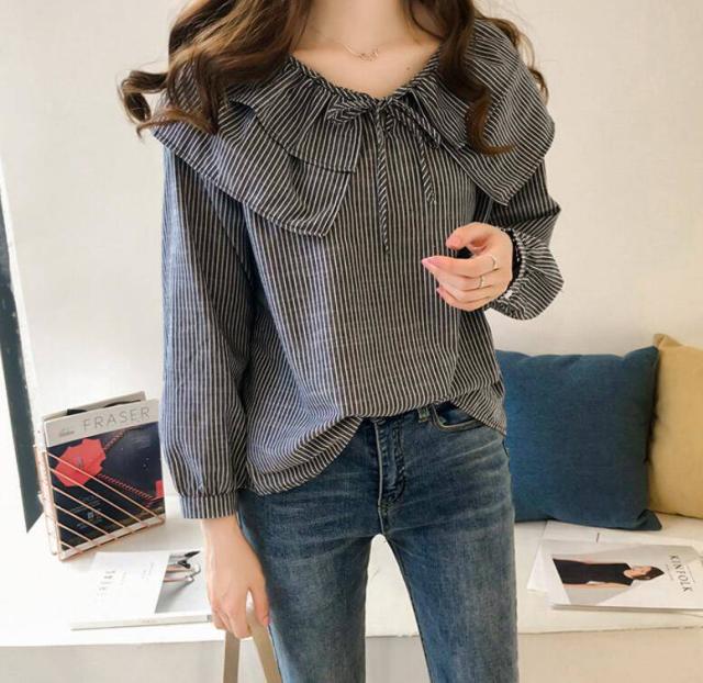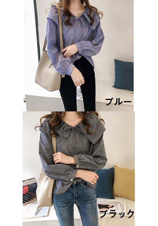 ブラウス レディース おしゃれ 40代 春秋 ブラウス 長袖シャツ ストライプ柄 大きいサイズ リボン オフィス 韓国風 トップス 通勤 大人 上品 着痩せ 2色