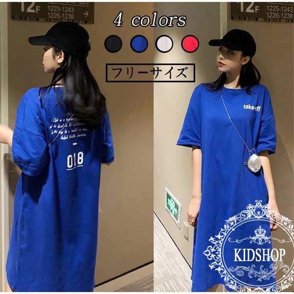 ビックティーシャツ クルーネック 半袖 ロング丈 Tシャツワンピース 夏 カットソー レディース ロンティー ゆったり tシャツ リゾート カジュアル