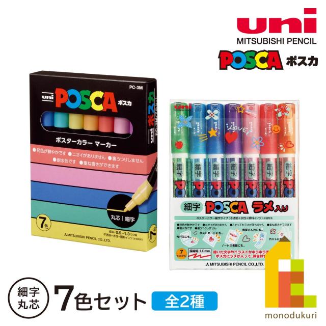 三菱鉛筆 ポスカ細字丸芯 【7色セット/ラメ7色セット】