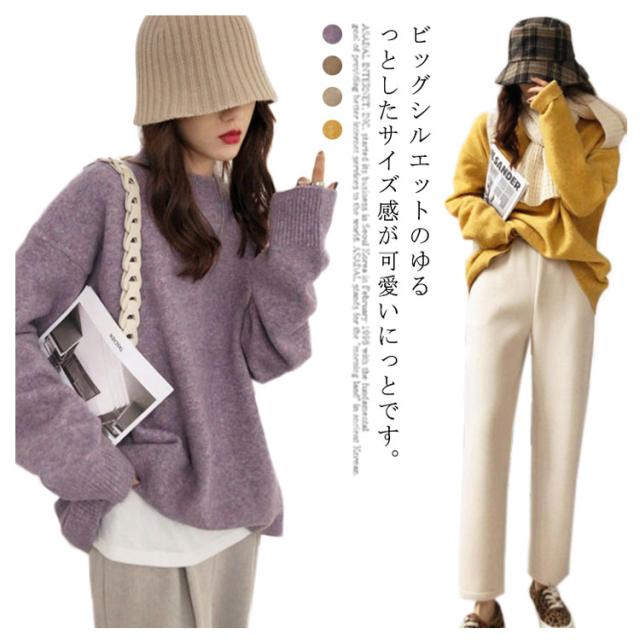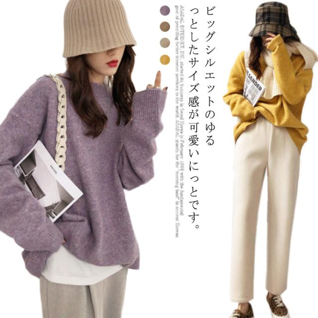 【送料無料】ニット セーター ハイゲージ レディース ミドル丈 長袖 無地 ゆったり 春秋冬 カシミヤタッチ トップス 韓国 クルーネック 丸ネック 大きめ ビッグシルエット プルオーバー おしゃれ きれいめ