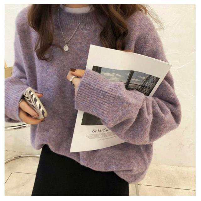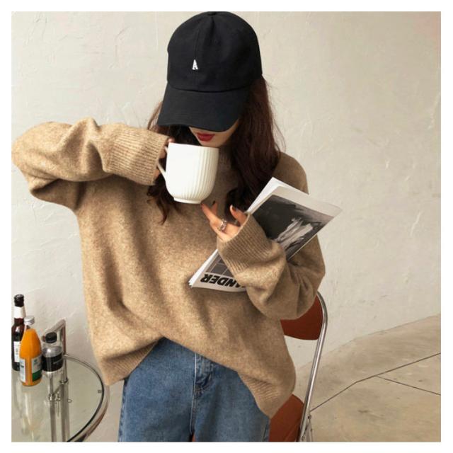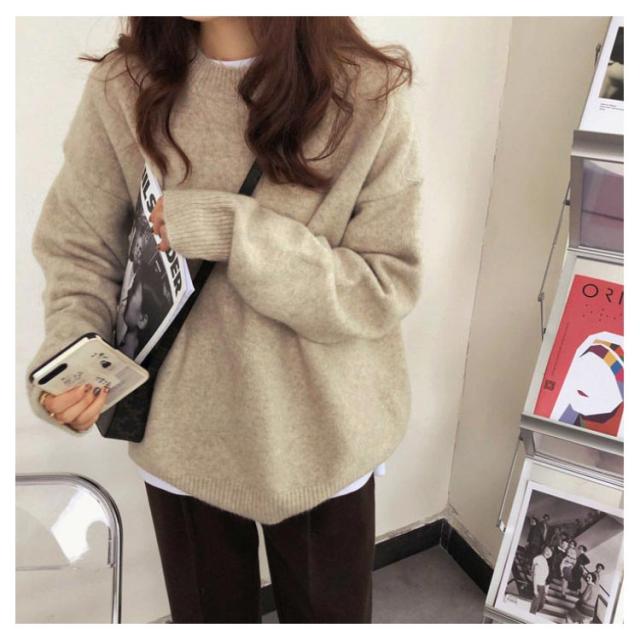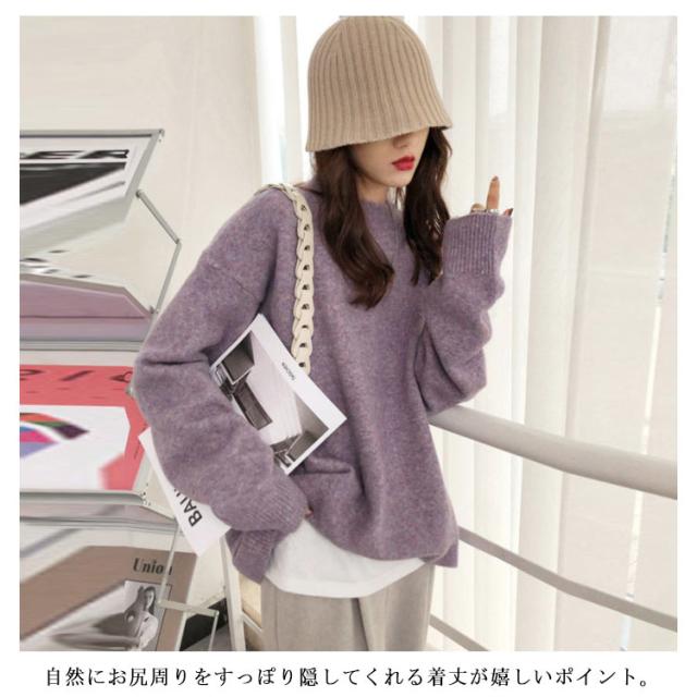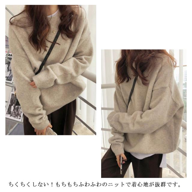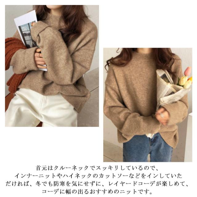 | ビッグシルエットのゆるっとしたサイズ感が可愛いにっとです。 ちくちくしない!もちもちふわふわのニットで着心地が抜群です。 長袖はやや長めの丈感で、袖を長めに着ていただいても、くしゅくしゅっとさせて着ていただくと可愛いです。 自然にお尻周りをすっぽり隠してくれる着丈が嬉しいポイント。 首元はクルーネックでスッキリしているので、インナーニットやハイネックのカットソーなどをインしていただければ、冬でも防寒を気にせずに、レイヤードコーデが楽しめて、コーデに幅の出るおすすめのニットです。 | |