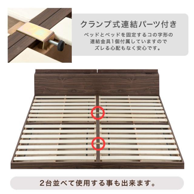 ベッド マットレス付き セミダブル 2口コンセント 宮棚 ローベッド 連結 フレーム ポケットコイルマットレス 木製 宮付き 宮 棚 マットレスセット ベット ベッドフレーム ベットフレーム フロアベッド 連結ベッド セミダブルベッド