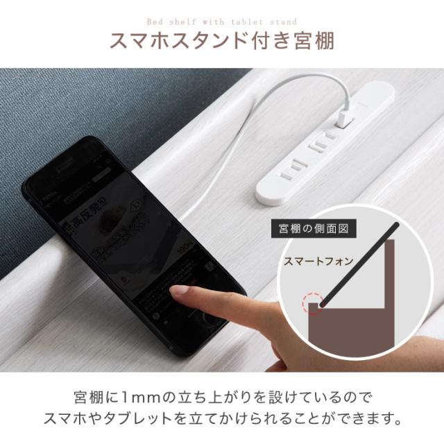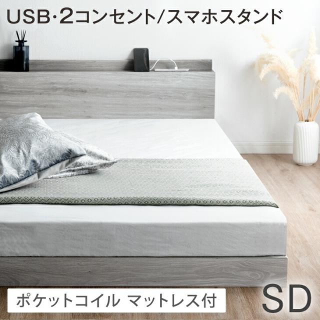 ベッド マットレス付き USB・2コンセント&スマホスタンド付 ベッド フレーム 宮棚付き すのこベット ローベット セミダブルサイズ 宮付きベッド セミダブルベッド おしゃれ
