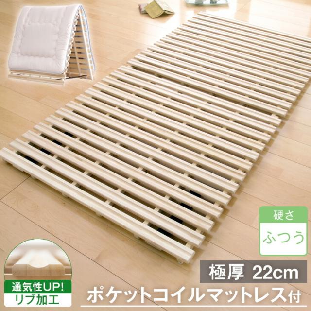 ベッド マットレス付き シングル すのこ すのこマット 折りたたみ 折りたたみマット 二つ折り 布団 桐 除湿 除湿マット マットレス 折り畳み ポケットコイルマットレス スプリングマットレス ポケットマットレス