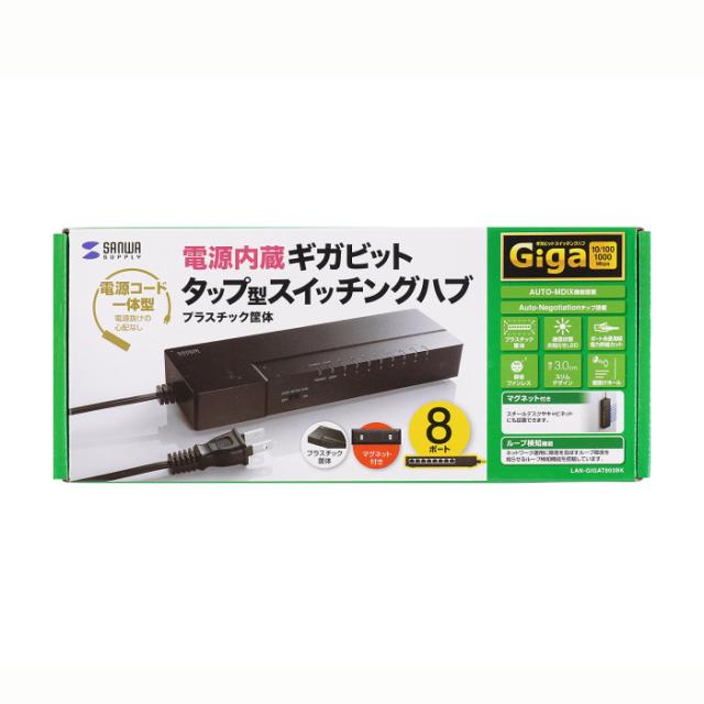 代引不可 ギガビット対応 タップ型スイッチングハブ(8ポート・マグネット付き) ACアダプタ 周辺機器 接続 ネットワーク機器 サンワサプライ LAN-GIGAT803BK
