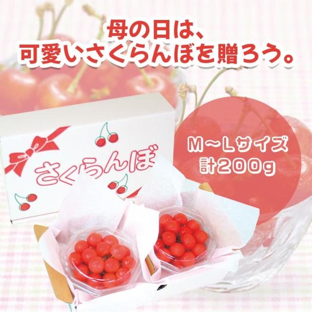母の日2026 ギフト 山形県産 佐藤錦 ハウスさくらんぼ 秀品・M〜Lサイズ 100g×2セット 計200g 幸福の果実 贈ろう 常温 化粧箱 メッセージカード