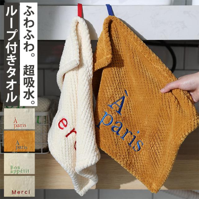 キッチンタオル キッチンクロス ハンドタオル ふきん ループ付き 吸水 キッチン タオル 速乾 抗菌 [郵1.5]^bm1227^