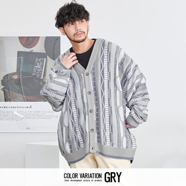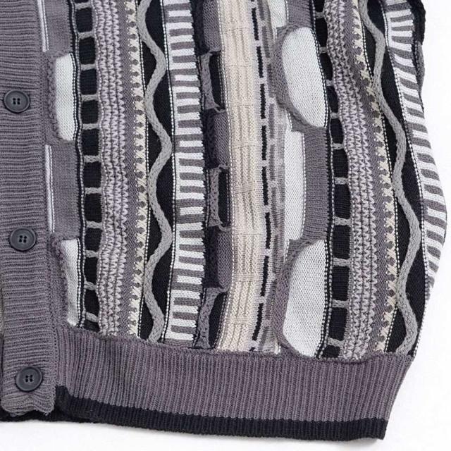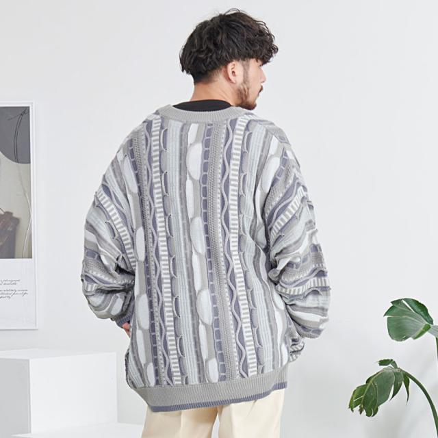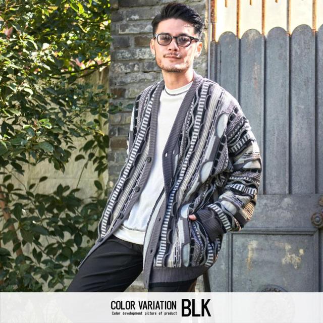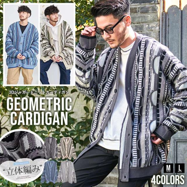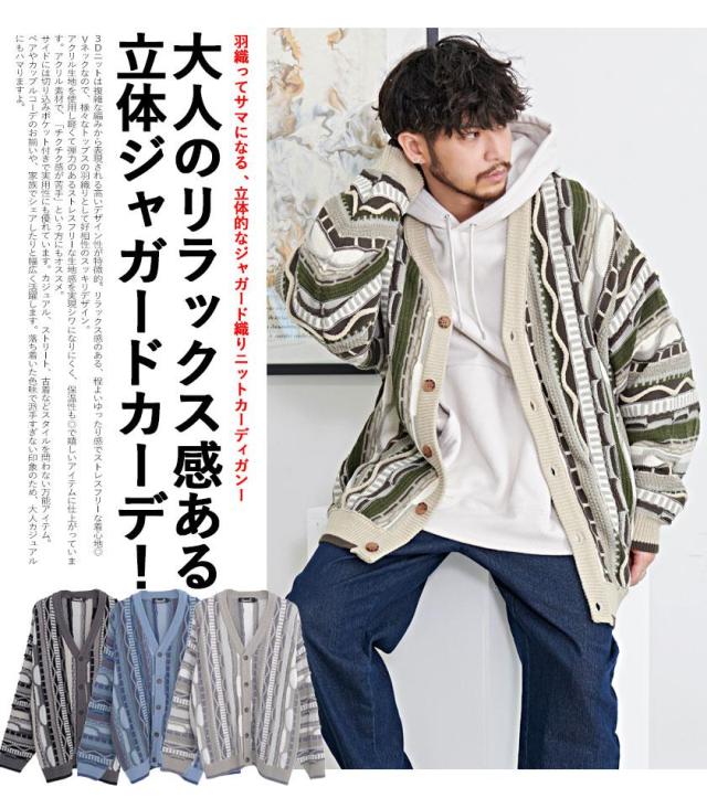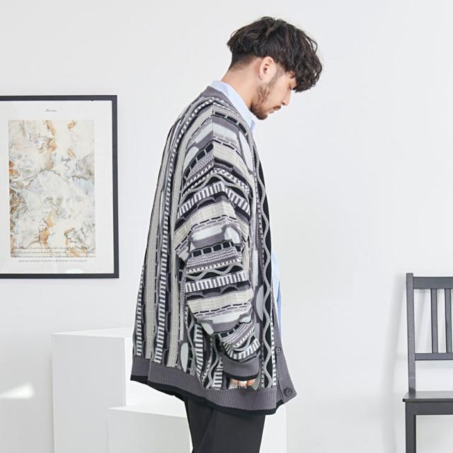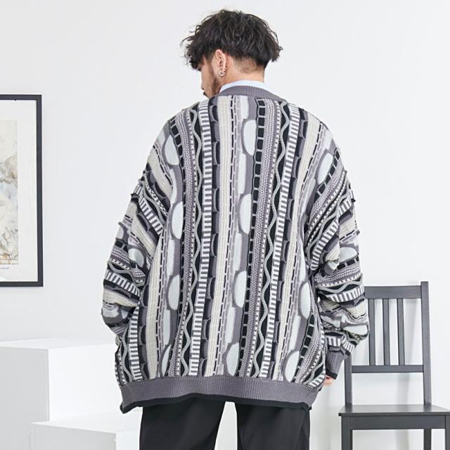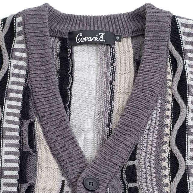 カーディガン メンズ おしゃれ 大人 大きいサイズ ニット ジャガード編み 立体 3Dニット Vネック UV対策 バルーンスリーブ 幾何学模様 CavariA ユニセックス 服 父の日 春 春服 カジュアル ファッションストリート ストリート系 ストリートファッション 韓国 韓国系 韓国ファッション 下北沢 下北系 古着 古着系 90s 90年代 2000年代 Y2K 男性 男 父の日 父の日ギフト 父の日プレゼント 20代 30代 40代 メンズファッション 東京 プレゼント 誕生日 記念日 贈り物 ギフト配送について