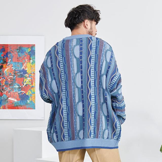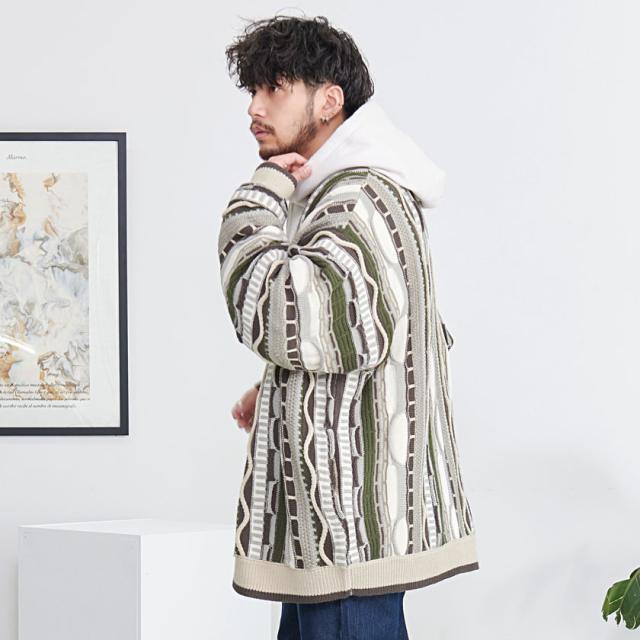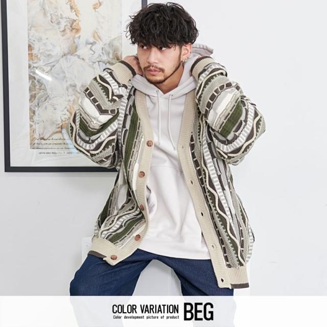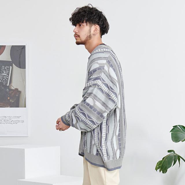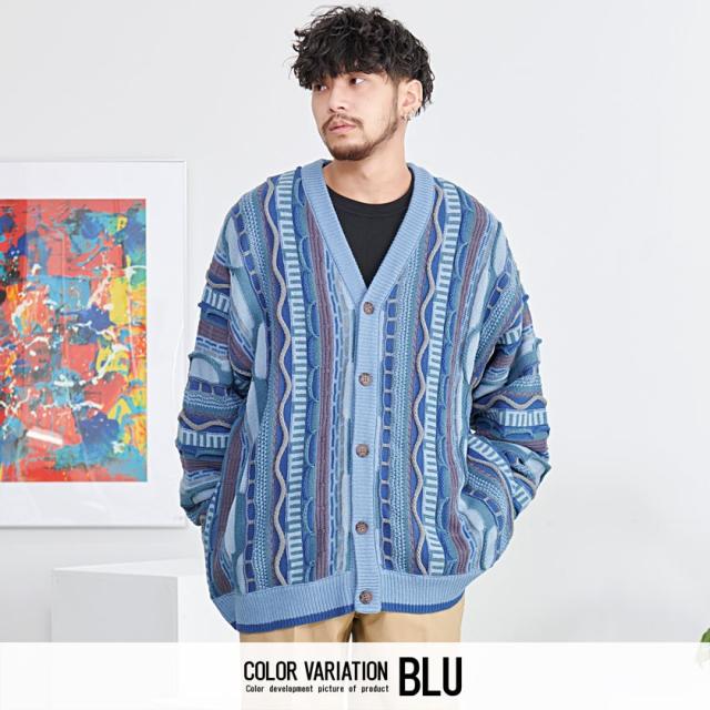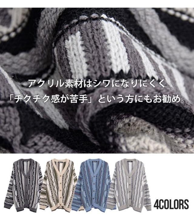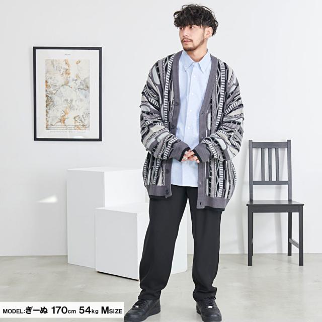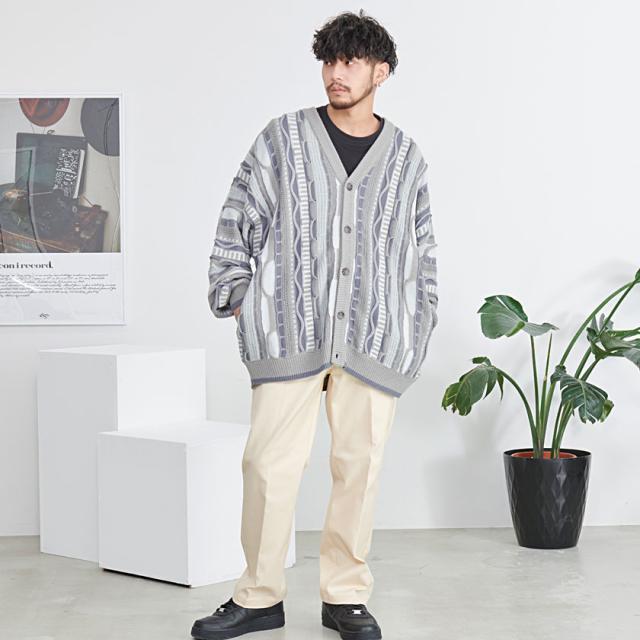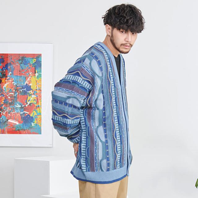 カーディガン メンズ おしゃれ 大人 大きいサイズ ニット ジャガード編み 立体 3Dニット Vネック UV対策 バルーンスリーブ 幾何学模様 CavariA ユニセックス 服 父の日 春 春服 カジュアル ファッションストリート ストリート系 ストリートファッション 韓国 韓国系 韓国ファッション 下北沢 下北系 古着 古着系 90s 90年代 2000年代 Y2K 男性 男 父の日 父の日ギフト 父の日プレゼント 20代 30代 40代 メンズファッション 東京 プレゼント 誕生日 記念日 贈り物 ギフト配送について
