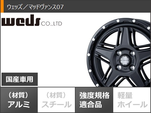 | ■ホイール名 MUD VANCE 07 (マッドヴァンス07) ■タイプ 1ピース 国産車用 ■カラー フルマットブラック ■その他 センターキャップ:付属 ナット:無し |
