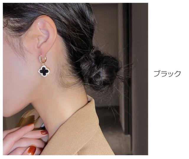フープピアス 18金 仕上げ 金属アレルギー対応 四つ葉 CZ ダイヤモンド レディース クローバー 揺れる ポイント消化 大人 可愛い