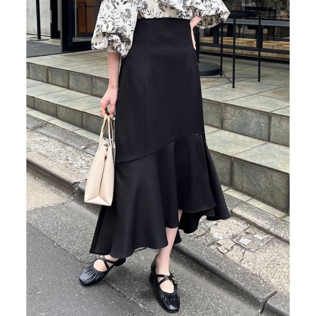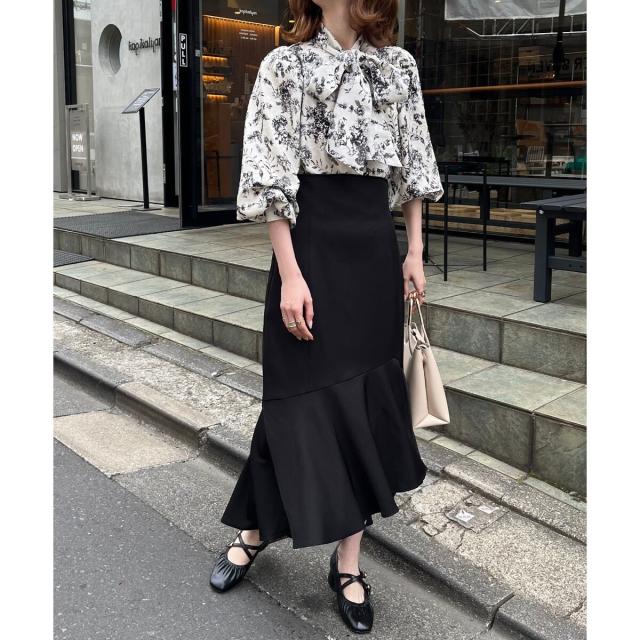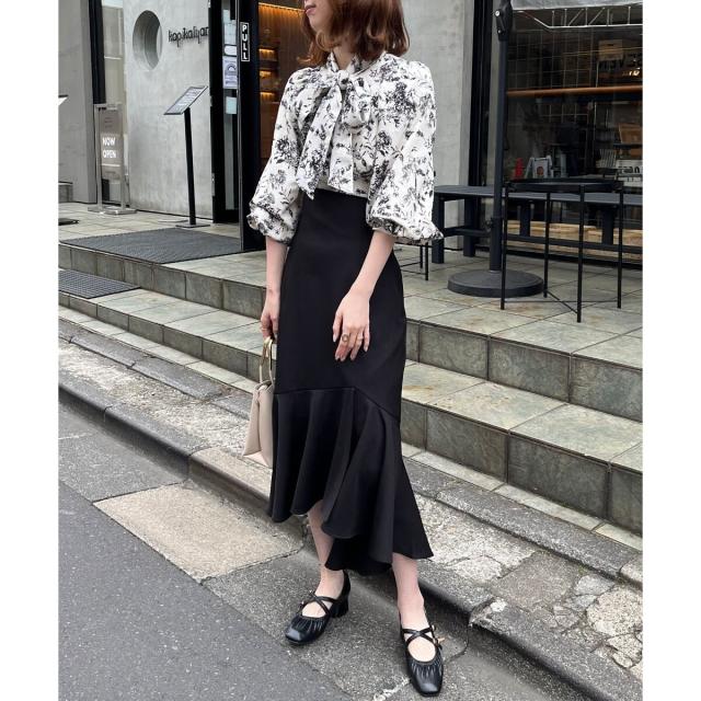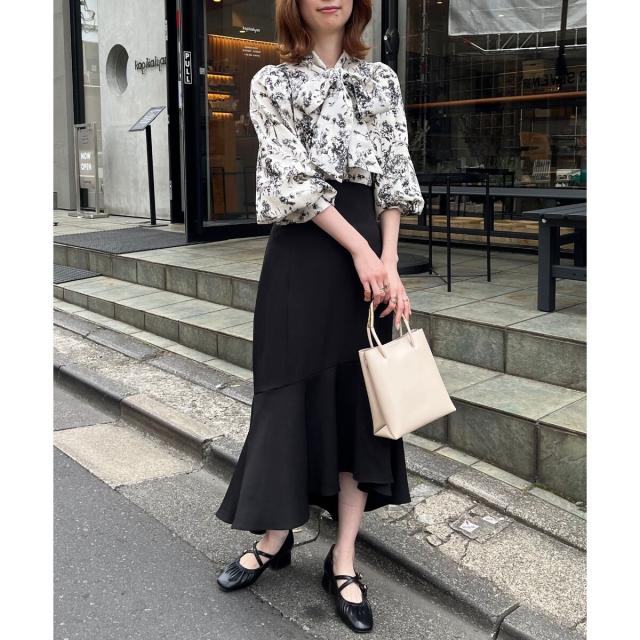 フリルやケープデザインのブラウスと合わせると旬のコーディネートに。