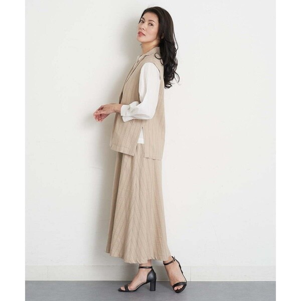 クラシカルなテーラード襟のジレはクールでハンサムな印象にしてくれます。ヒップラインが隠れるミドル丈はすっきり感があり、スタイリングも軽やになります。同素材のスカート[PZHET25360]とはもちろん、パンツにも合わせやすい丈感です。クールなデザインながらもリネンのナチュラルな素材感で中和させた大人の女性らしいソフトな雰囲気に仕上げています。サイドベンツの入ったデザインで、横からの印象にも気を配った仕上がりです。裏地なしの一重仕立てでインナー次第でロングシーズン楽しんでいただけます。