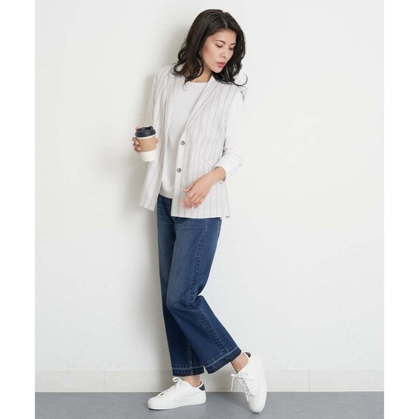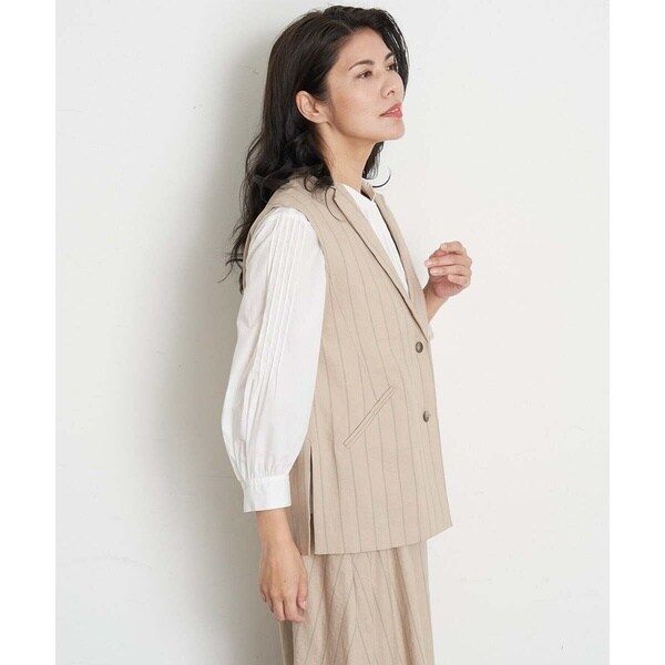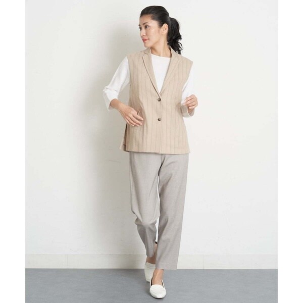 大人の女性らしいソフトな雰囲気を醸し出すリネン混素材のジレ