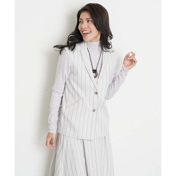 [セットアップ対応]リネンへリンボンストライプジレ