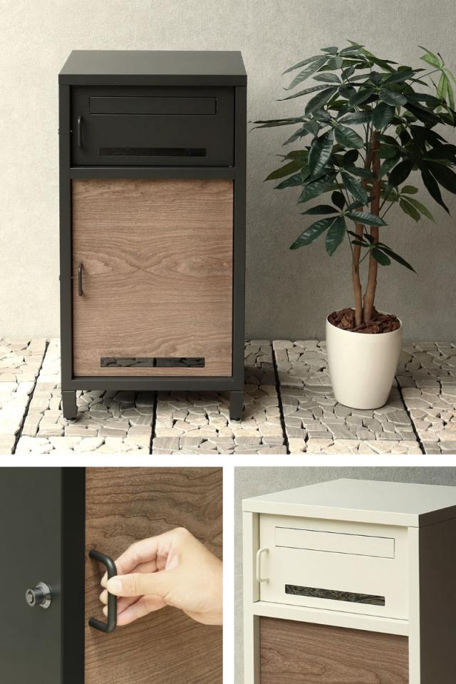 1台で郵便物の受け取りも宅配瓶の受け取りもできる便利な宅配ボックスです。シンプルなカラーリングに温かみのある木目調がアクセントのスタイリッシュなデザインで、どんな玄関にも馴染みます。
