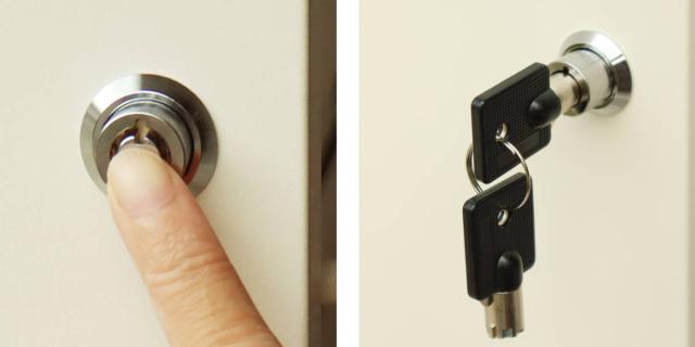 上段、下段ともにワンタッチロックキーを押すと施錠でき、防犯面にも安心です。ロックを解除する際には付属のキーをご使用下さい。