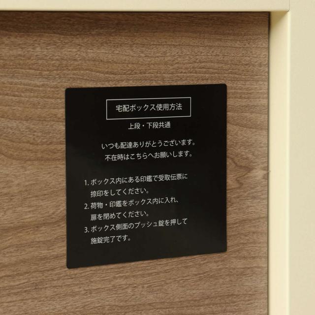 扉の裏には印鑑ケースが付いています。宅配業者さんが押印すると受け取り完了です。上段にもついているので、上下段ともに宅配ボックスとしてお使いいただけます。
